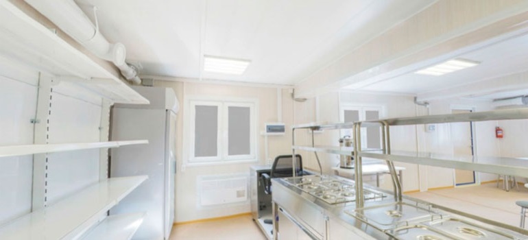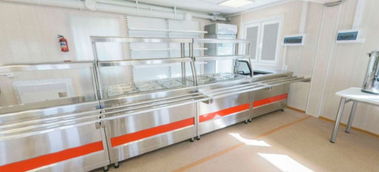 Здание представляет из себя быстровозводимые модули включающие помещения: обеденный зал, гардероб, горячий и холодный цех приготовления пищи, склад, холодильные камеры. Состав и компановка помещений определяются на стадии разработки проекта, согласно потребностей заказчика. Силами нашей компании могут быть изготовлены, как небольшие кафе (на базе контейнеров), так и крупногабаритные здания.